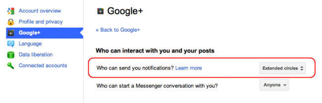 • Invite you to play or send you messages from a gameYou’ll still be notified if someone comments on one of your posts or adds you to a circle