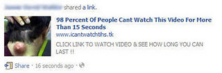 This kind of post normally takes you to a site and asks you to share the video to see it or post a script on your browsers address bar and execute it. When you post a script on the browser address bar, the script automatically posts the same video to all your friends wall. You friends thinks that you shared the post with them and fall into the same trap of re-sharing the video to all his Facebook friends. Matt Jones of Facebook explains how this scam works in a short video below.