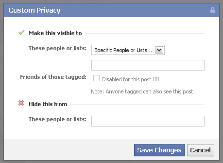 Step 3: If you want to show your friends list to a specific list of person then from “Make this visible to” section of the popup, select “Specific People or Lists..” and add the names of your friends to whom you want to show your friends list.